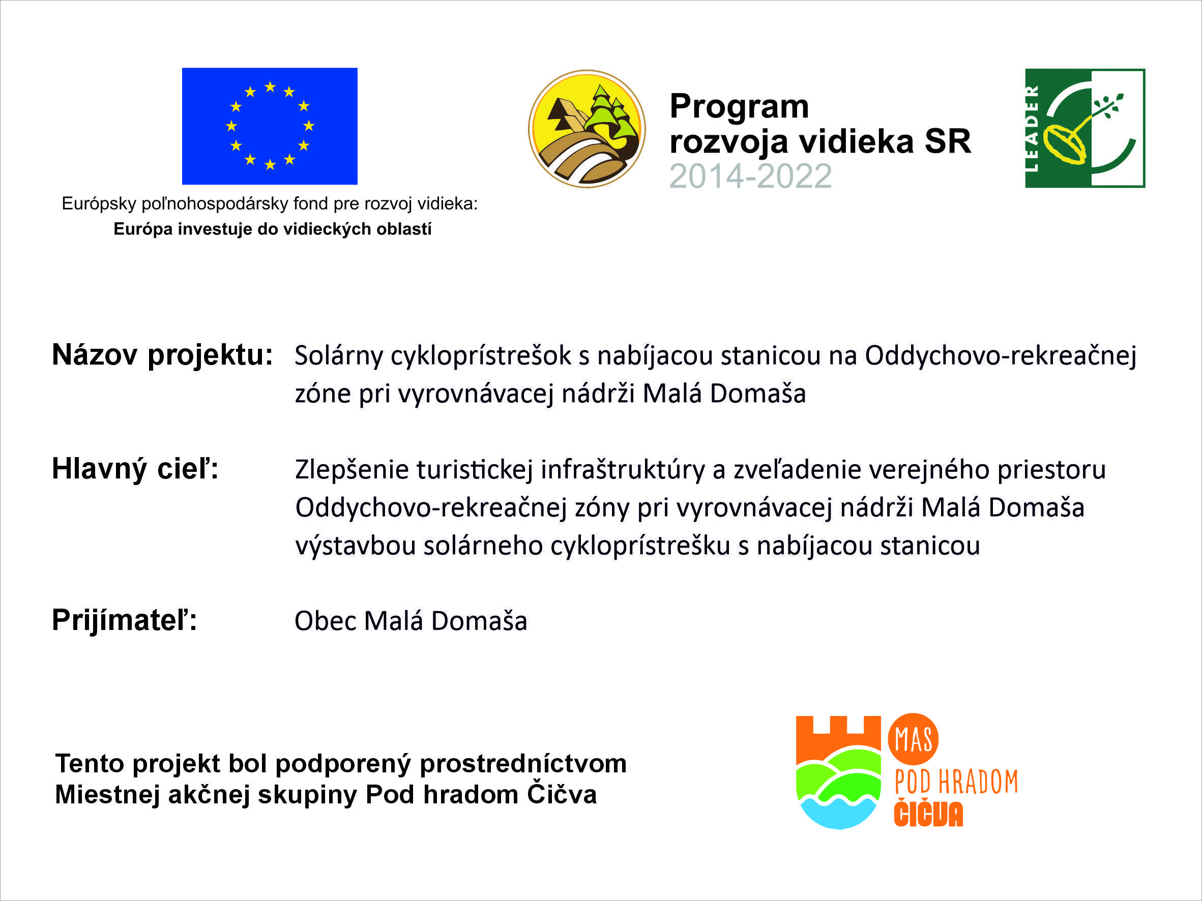 Názov projektu: Solárny cykloprístrešok s nabíjacou stanicou na Oddychovo-rekreačnej zóne pri vyrovnávacej nádrži Malá Domaša